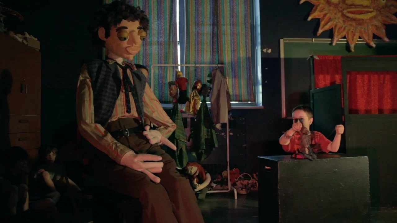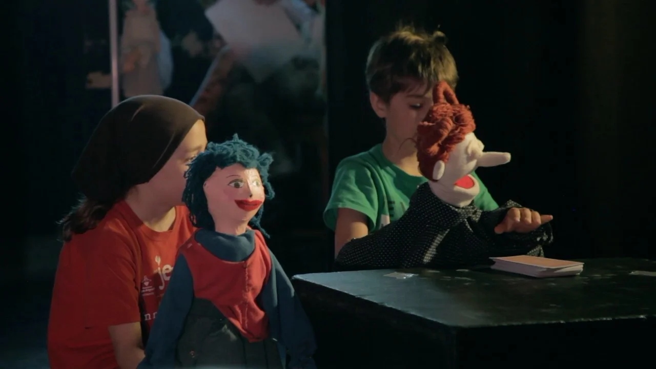 L'artiste a fourni aux élèves une quarantaine de marionnettes de sa fabrication, leur offrant ainsi un éventail varié de modèles pour que chacun puisse se familiariser avec les différents types de marionnettes : géante, à gaine, marotte, à fils, etc car chaque type de marionnette a sa propre façon de faire passer un message.